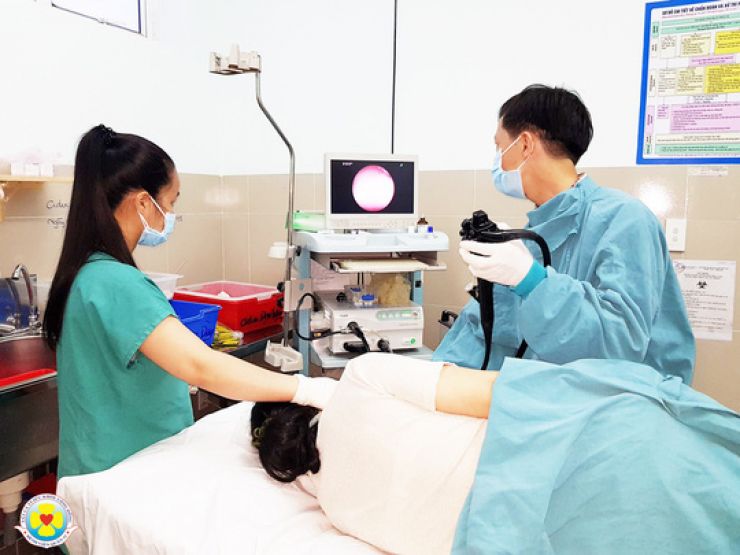 Chị V. đang được nội soi gắp que xiên ra ngoài