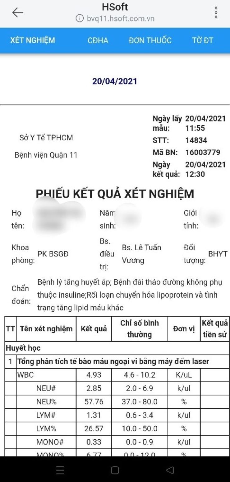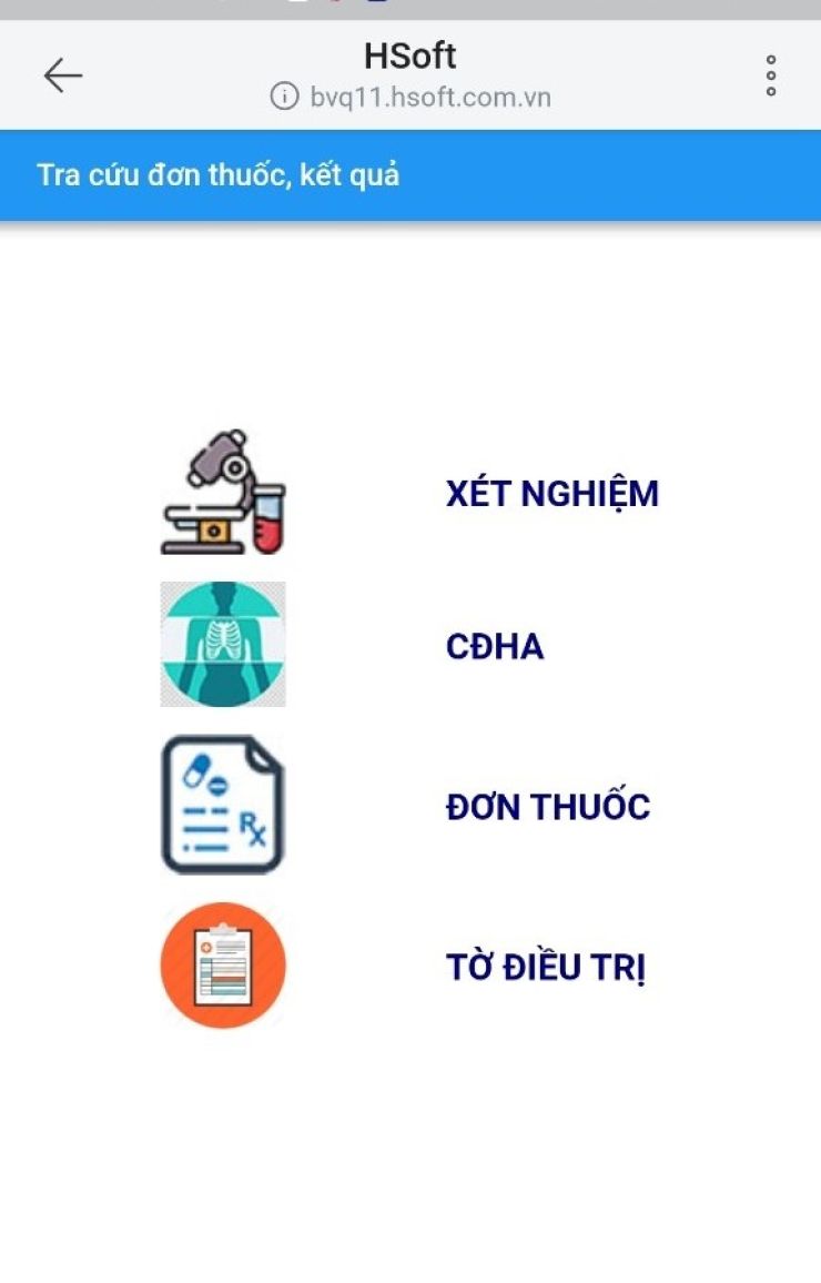 - Bước 3: Người bệnh tra cứu mục cần chọn. Sau 2-3 giây, toàn bộ kết quả hiển thị trên website bvq11.hsoft.com.vn.