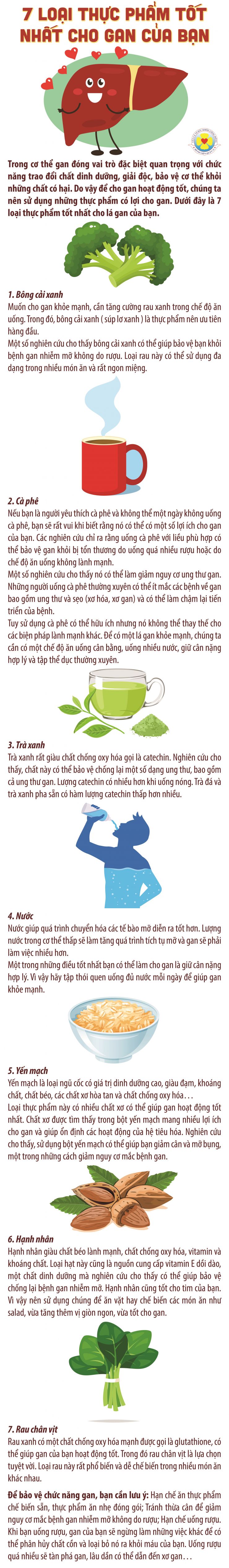 Trong cơ thể gan đóng vai trò đặc biệt quan trọng với chức năng trao đổi chất dinh dưỡng, giải độc, bảo vệ cơ thể khỏi những chất có hại. Do vậy để cho gan hoạt động tốt, chúng ta nên sử dụng những thực phẩm có lợi cho gan. Dưới đây là 7 loại thực phẩm tốt nhất cho lá gan của bạn.