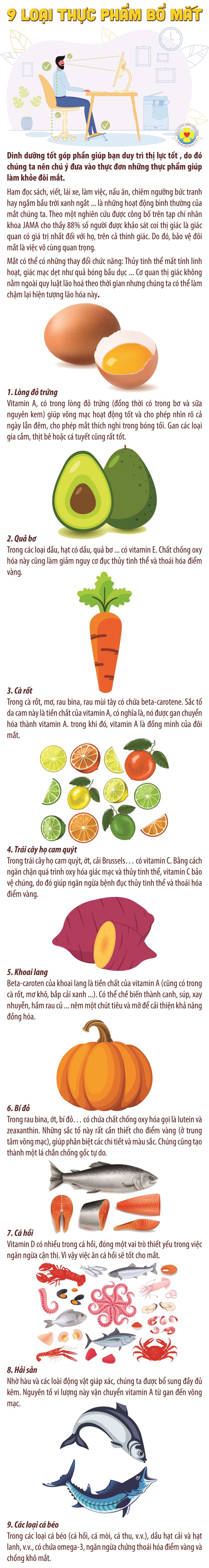 Dinh dưỡng tốt góp phần giúp bạn duy trì thị lực tốt , do đó chúng ta nên chú ý đưa vào thực đơn những thực phẩm giúp làm khỏe đôi mắt.