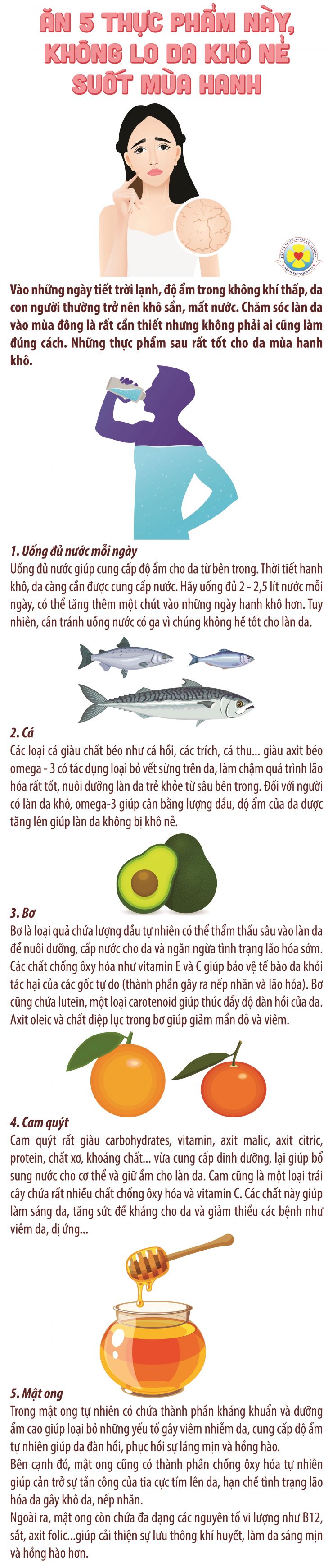 Ăn 5 thực phẩm này, không lo da khô nẻ suốt mùa hanh