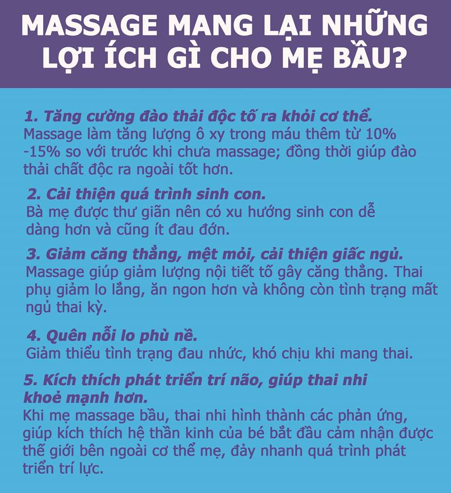 Khi mẹ massage bầu, thai nhi hình thành các phản ứng, giúp kích thích hệ thần kinh của bé bắt đầu cảm nhận được thế giới bên ngoài cơ thể mẹ, đẩy nhanh quá trình phát triển trí lực.