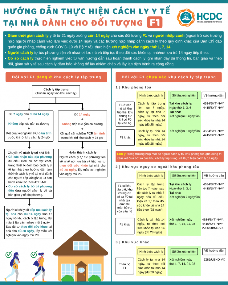 Trước tình hình dịch COVID-19 diễn biến phức tạp, số ca nhiễm ngày càng gia tăng, kéo theo số lượng đối tượng tiếp xúc gần F1 cũng tăng theo, gây ra áp lực lớn cho các địa phương trong việc tổ chức cách ly tập trung. Để đảm bảo an toàn phòng chống lây nhiễm dịch bệnh trong cộng đồng, Thành phố Hồ Chí Minh triển khai tổ chức cách ly tại nhà đối với đối tượng F1 trên địa bàn.