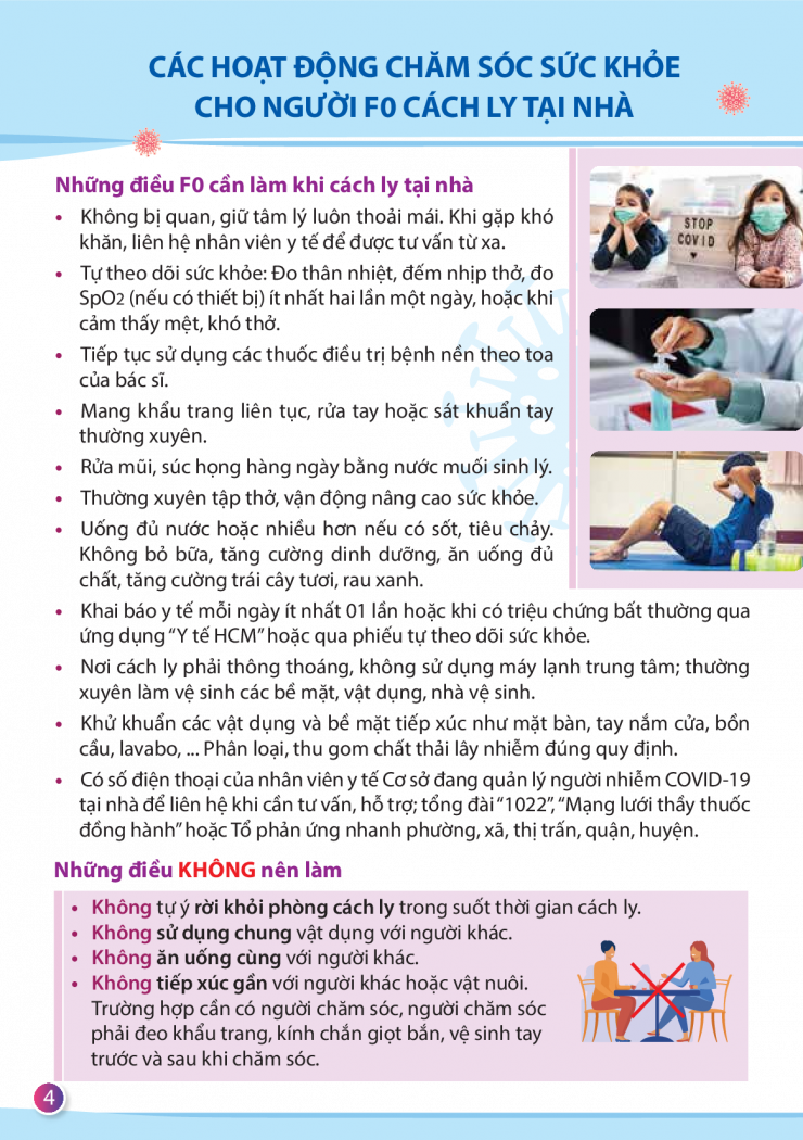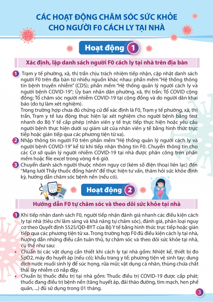 Bên cạnh đó, cơ sở được phân công quản lý F0 lập danh sách xác nhận F0 khỏi bệnh, báo cáo Ban Chỉ đạo phòng, chống dịch COVID-19 phường, xã, thị trấn để cấp giấy xác nhận hoàn thành thời gian cách ly theo quy định; đồng thời cấp giấy nghỉ việc hưởng bảo hiểm xã hội cho người lao động theo hướng dẫn của Sở Y tế tại công văn số 9000/SYT-NVY ngày 02/12/2021 (đối với người lao động là F0).