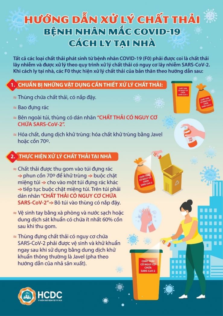 Khi cách ly tại nhà, các F0 thực hiện xử lý chất thải của bản thân theo hướng dẫn sau: