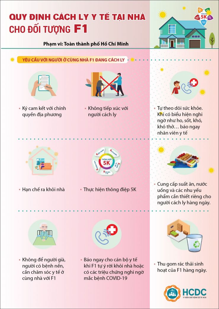 Các trạm y tế sẽ tổ chức thẩm định điều kiện cách ly y tế tại nhà cho đối tượng F1, sau đó tham mưu ủy ban nhân dân phường, xã, thị trấn ban hành quyết định cách ly F1 tại nhà. Hàng ngày, trạm y tế sẽ tiếp nhận thông tin và kiểm tra tình trạng sức khỏe người cách ly, người chăm sóc, hỗ trợ người cách ly; hỗ trợ đo thân nhiệt nếu những đối tượng này không tự lo được; ghi chép kết quả giám sát vào phiếu theo dõi sức khỏe hàng ngày.