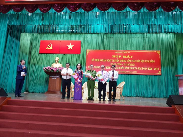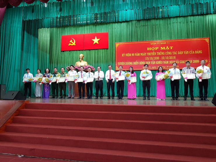 Sáng ngày 16/10/2019, Đảng bộ Bệnh viện Quận 11 tham dự họp mặt kỷ niệm 89 năm ngày truyền thống công tác dân vận của đảng (15/10/1930 - 15/10/2019) và tuyên dương điển hình Dân vận khéo năm 2019 và giai đoạn 2009-2019 tại Hội trường Quận ủy Quận 11.