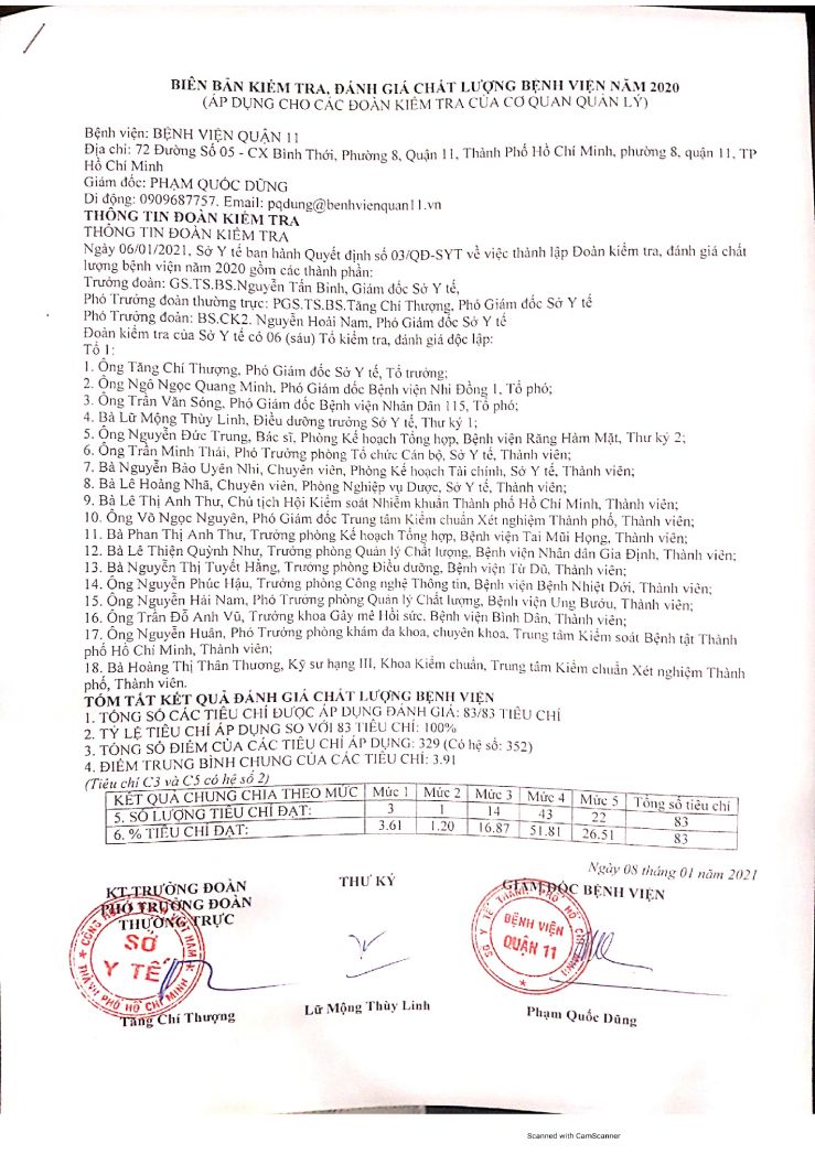 Biên bản kiểm tra, đánh giá chất lượng bệnh viện năm 2020