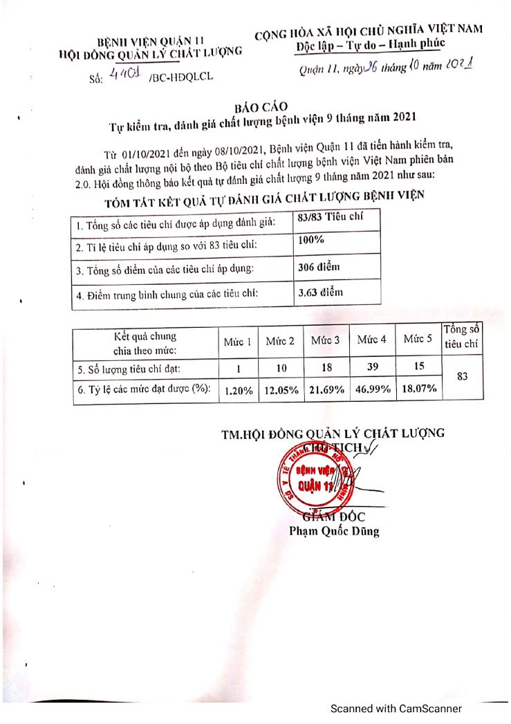 TÓM TẮT KẾT QUẢ TỰ KIỂM TRA ĐÁNH GIÁ CHẤT LƯỢNG BỆNH VIỆN 9 THÁNG NĂM 2021