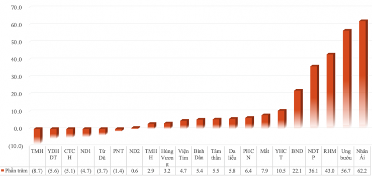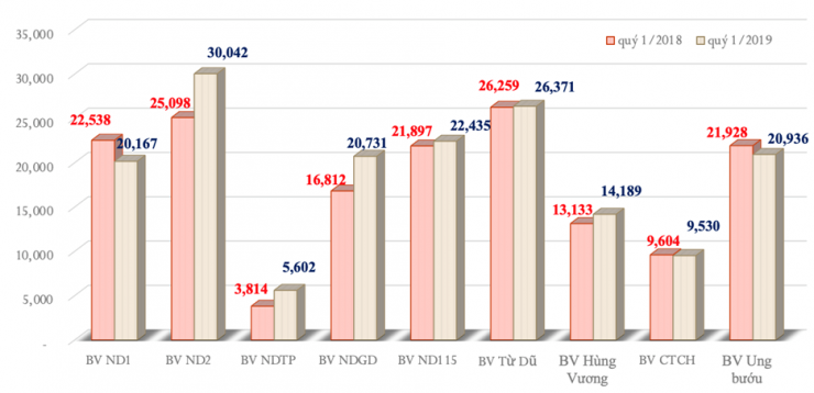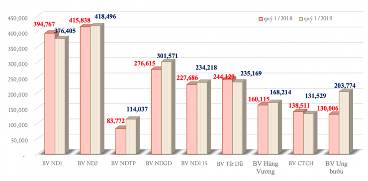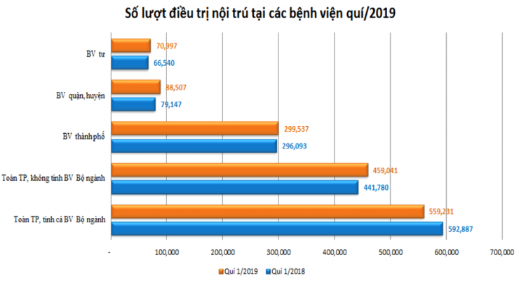 - Tình hình các bệnh viện chuyên khoa quá tải: BV Nhi đồng Thành phố tăng cả ngoại trú và nội trú, BV Nhi đồng 1 giảm cả ngoại trú và nội trú trong khi BV Nhi đồng 2 tăng nhẹ cả về ngoại trú lẫn nội trú; BV Ung bướu có số lượt nội trú giảm nhẹ nhưng ngoại trú tăng mạnh; BV Hùng Vương tăng cả ngoại trú lẫn nội trú.