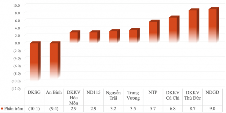 - Biến động số lượt khám của các BV quận, huyện của thành phố: