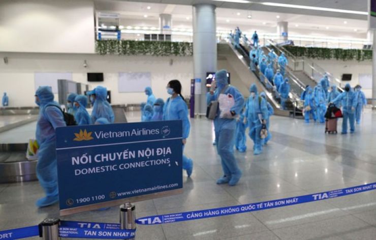Sau khi hạ cánh, máy bay được đơn vị y tế phun khử trùng toàn bộ khoang hành khách, buồng lái bằng hóa chất đáp ứng tiêu chuẩn quốc tế. Ngày 14-8 sẽ có 2 chuyến bay chở hơn 300 người còn lại về TPHCM.