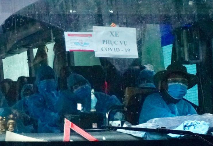Hành khách lên xe về khu cách ly. Ảnh: HOÀNG HÙNG