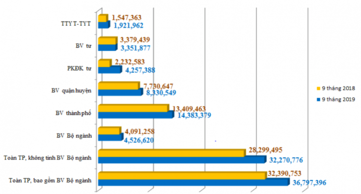 Với hơn 36 triệu lượt khám ngoại trú tại các bệnh viện và các cơ sở y tế trên địa bàn thành phố trong 9 tháng đầu năm 2019 cho thấy số lượt khám có xu hướng tăng qua các năm (cùng kỳ năm 2018 là hơn 32 triệu lượt) vẫn chưa có điểm dừng.