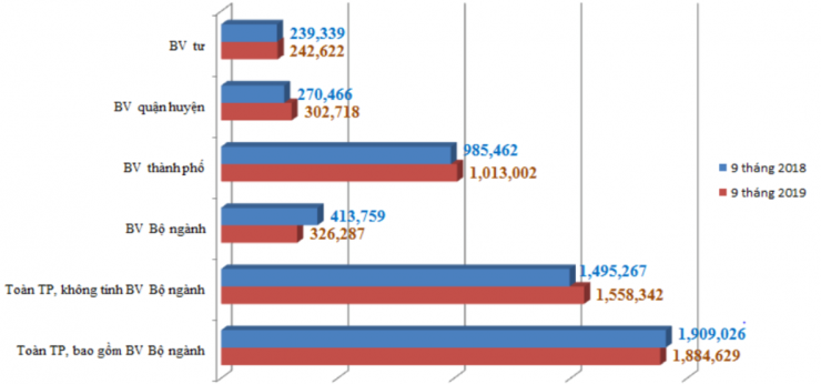 Số lượt điều trị nội trú 9 tháng đầu năm 2019 tại các cơ sở y tế trên địa bàn thành phố