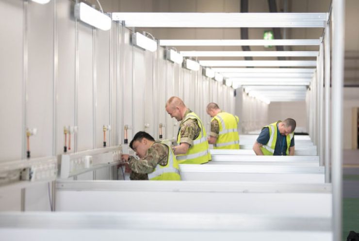Trong vòng 9 ngày, Trung tâm triển lãm ExCel đã được cải tạo với bộ khung cho 80 khu điều trị, mỗi khu có 42 giường bệnh.