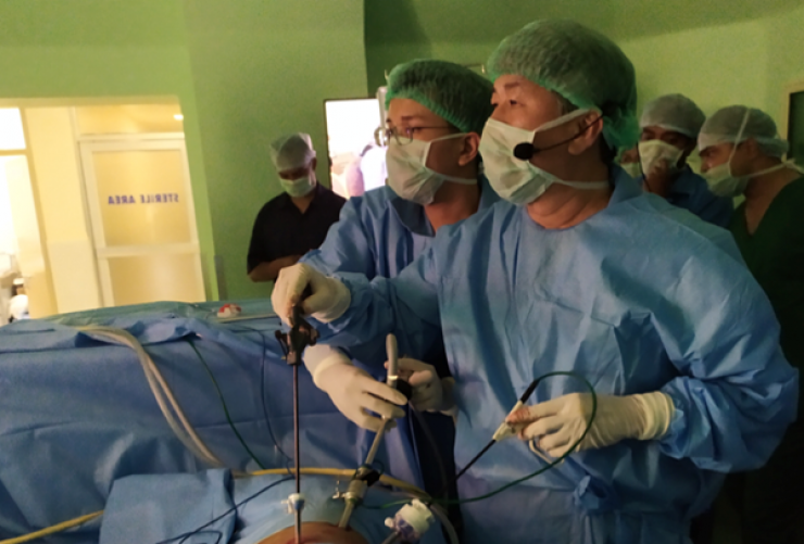 TS BS Phạm Phú Phát (Bệnh viện Bình Dân) mổ nội soi sau phúc mạc thị phạm tại Ấn Độ