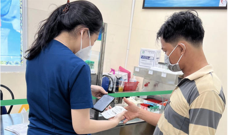 Người bệnh đến lấy kết quả xét nghiệm sau khi nhận tin nhắn tại BV Bình Dân