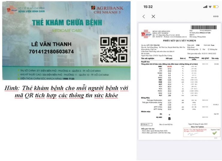 Thẻ khám bệnh thông minh vừa tích hợp thông tin khám chữa bệnh của người bệnh vừa là thẻ thanh toán viện phí. Ngay khi nhận được tin nhắn SMS báo có kết quả xét nghiệm hoặc chẩn đoán hình ảnh, người bệnh có thể dùng điện thoại thông minh quét mã QR trên thẻ khám bệnh được nhận khi đăng ký khám bệnh để xem các kết quả cập nhật. Ngoài ra, thẻ khám bệnh thông minh với mã QR cho phép người bệnh chủ động lấy số thứ tự bằng cách đưa mã vào các máy quét thẻ tại các khu vực có đặt kiosk đặt hẹn trong bệnh viện. Việc ứng dụng thẻ khám bệnh thông minh giúp cho việc quản lý, lưu trữ thông tin giữa người bệnh và bệnh viện hiệu quả hơn.