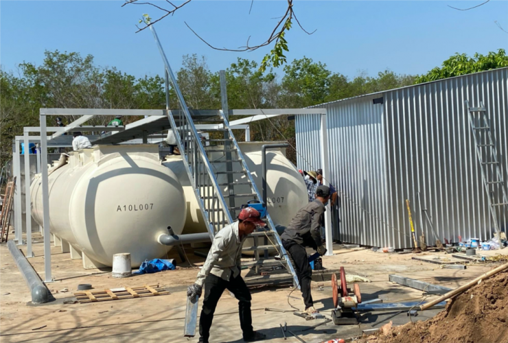 Những công đoạn cuối cùng trong đấu nối hệ thống xử lý nước thải y tế tại BV dã chiến sáng ngày 19/02/2020