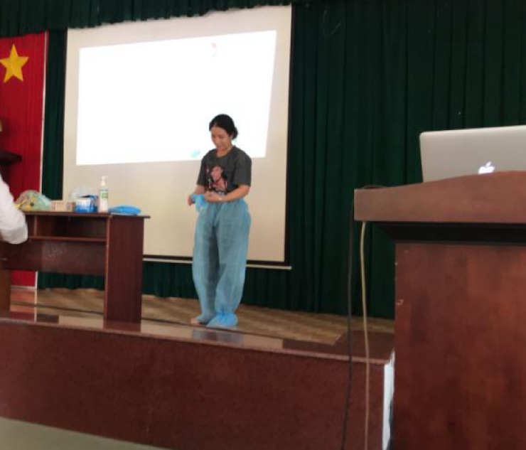 Nhân viên y tế thực hành mặc và tháo phương tiện phòng hộ cá nhân