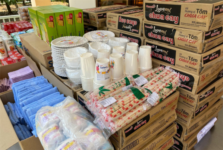 Những vật dụng cá nhân thiết yếu do Sài Gòn Co-op cung cấp miễn phí chuẩn bị chuyển đến cho người được cách ly theo dõi tại BV dã chiến