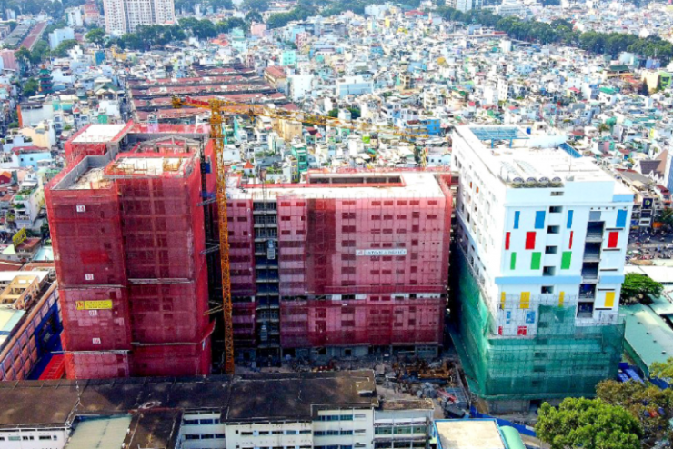 Ba khối nhà đầu tiên của BV Nhi Đồng 1 đang được thi công, dự kiến đưa vào sử dụng cuối năm 2021