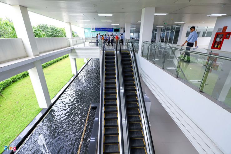 Hệ thống thang cuốn, thang máy đã được lắp đặt hoàn thiện để phục vụ người bệnh và thân nhân.