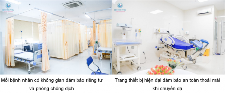 Một là đưa vào sử dụng khu vực Sanh khang trang, sạch sẽ, thiết kế tinh tế vừa đảm bảo tính riêng tư, an toàn phòng chống dịch COVID-19 cùng với trang thiết bị hiện đại đảm bảo cuộc chuyển dạ được diễn ra an toàn, thoải mái và tiện nghi nhất.
