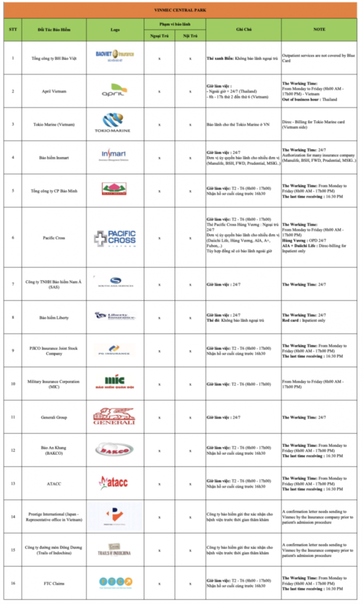 Cũng giống như các bệnh viện khác, do tác động của COVID-19, số lượt bệnh nhân đến khám và điều trị tại bệnh viện Vinmec Central Park trong năm 2020 giảm khoảng 15%. Gần 10% bệnh nhân của bệnh viện Vinmec Central Park là người nước ngoài đang sinh sống và làm việc tại thành phố, trong đó chiếm đa số là người Nhật, Hàn Quốc, Mỹ, và Châu Âu. Tương tự BV FV, bệnh viện Vinmec Central Park được nhiều công ty bảo hiểm tư nhân trong và ngoài nước (tổng cộng có 41 công ty) ký hợp đồng khám, chữa bệnh BHYT vì bệnh viện đã đạt được các chuẩn chất lượng quốc tế (JCI, ISO 15189,…) và triển khai nhiều kỹ thuật điều trị chuyên sâu.