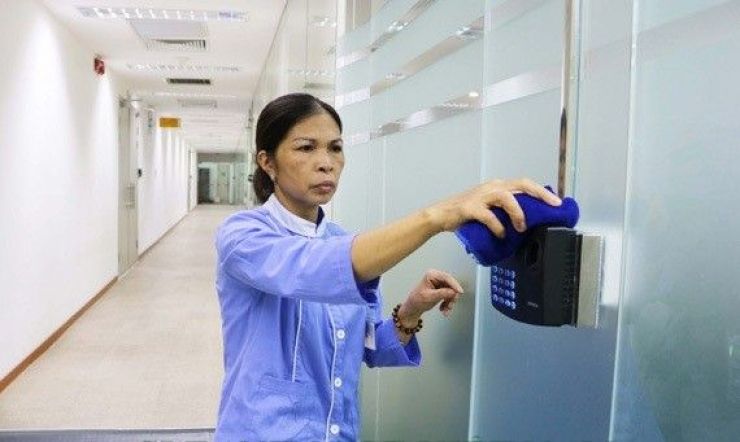 - Duy trì vệ sinh sạch sẽ, thường xuyên lau nền nhà và khử trùng các bề mặt các đồ vật tại nơi làm việc có thể có vi rút như tay nắm cửa, nút bấm thang máy, điện thoại dùng chung, bàn phím máy tính, mặt bàn,… bằng các chất tẩy rửa thông thường như xà phòng và các dung dịch khử khuẩn thông thường khác;