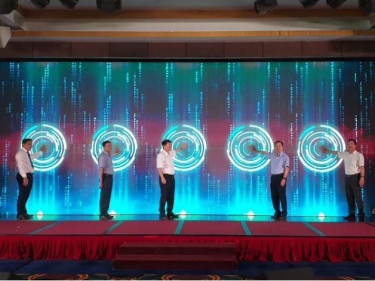 Thứ trưởng Bộ Y tế Trương Quốc Cường cùng các đồng chí lãnh đạo Cục Quản lý dược bấm nút ra mắt Ngân hàng dữ liệu ngành dược