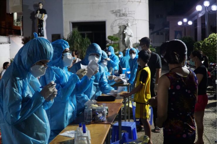 Liên quan đến chuỗi lây tại Hội thánh truyền giáo Phục Hưng, khiến ngành y tế TP.HCM phải xuyên đêm (đêm 28.5 đến sáng 29.5) lấy mẫu xét nghiệm tại Q.Gò Vấp. (Ảnh: Khánh Trần, thanhnien.vn)