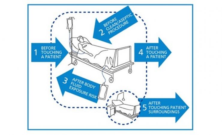 5 thời điểm phải vệ sinh tay của nhân viên y tế (“My 5 moments for hand hygiene – WHO”)