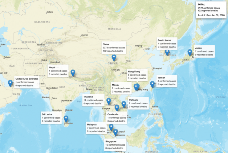 Số liệu cập nhật đến 5g13ph sáng ngày 30/01/2020, tổng số người mắc trên thế giới: 6172, 132 người chết(theo https://infographics.channelnewsasia.com/wuhan/gmap.html).