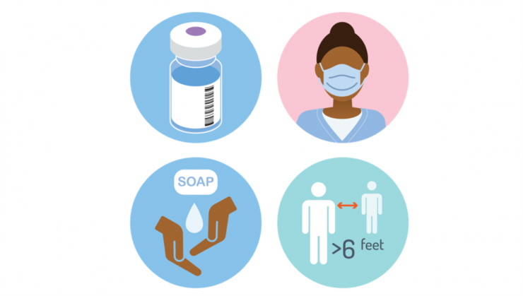 Trên cổng thông tin điện tử của CDC đã xuất hiện hình ảnh trên nhằm truyền thông cho người dân các giải pháp hiệu quả để phòng chống COVID-19, trong đó, vắc-xin là một giải pháp mới, nhưng nhấn mạnh vẫn phải kết hợp các giải pháp cho dù đã tiêm vắc-xin. Cụ thể, các nội dung truyền thông của CDC như sau:
