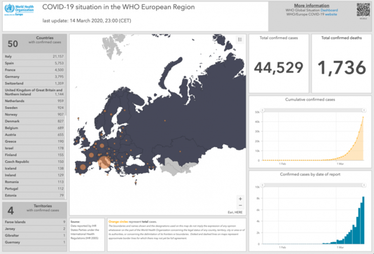 Tính đến sáng sớm ngày 15/03/2020, đã có hơn 44.500 trường hợp được xác nhận và đã có 1.736 trường hợp tử vong ở khu vực châu Âu. Tiến sĩ Kluge tuyên bố dự báo số lượng các trường hợp mắc và tử vong dự kiến sẽ tiếp tục tăng hơn nữa. Ông kêu gọi các nước tiếp tục thực hiện chiến lược ngăn chặn đồng thời đẩy nhanh nỗ lực kiểm soát căn bệnh này. Hành động nhanh chóng là điều cần thiết trong giai đoạn hiện nay và có thể tạo ra sự khác biệt mỗi ngày.