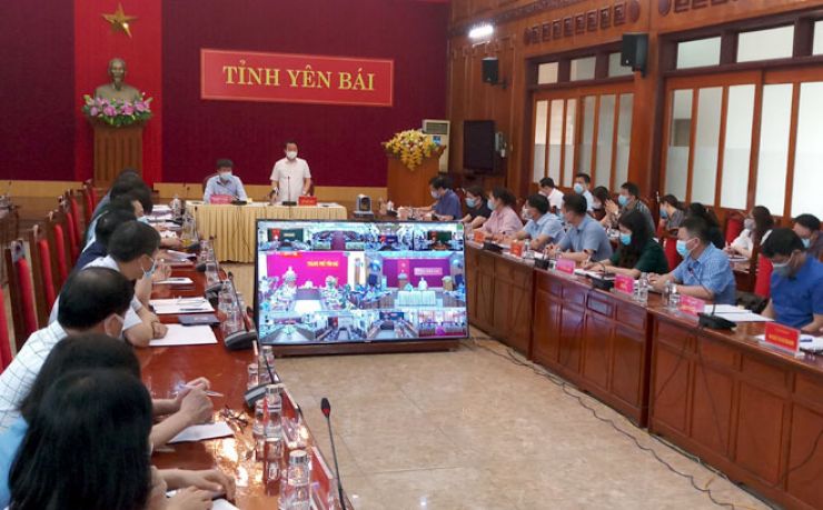 Cuộc họp BCĐ phòng chống dịch COVID-19 tỉnh Yên Bái ngày 2/5 (ảnh Báo Yên Bái)