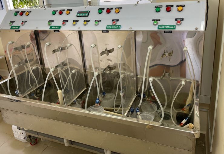 Buồng rửa quả lọc, các quả lọc của bệnh nhân viêm gan được tách riêng khi xử lý
