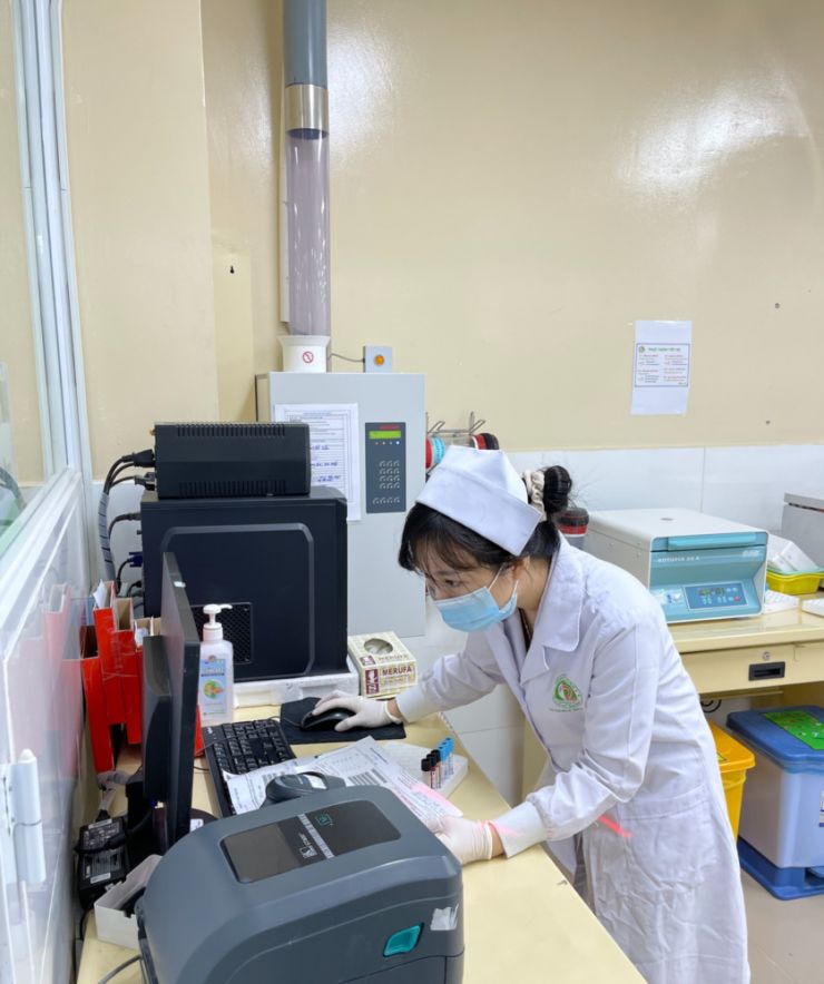 Kỹ thuật viên xét nghiệm nhận mẫu bệnh phẩm gửi đến từ các khoa lâm sàng