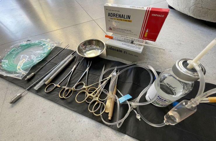 Bộ dụng cụ, thuốc để hút mỡ bụng tại thẩm mỹ Ngọc Nguyễn ẢNH: DUY TÍNH