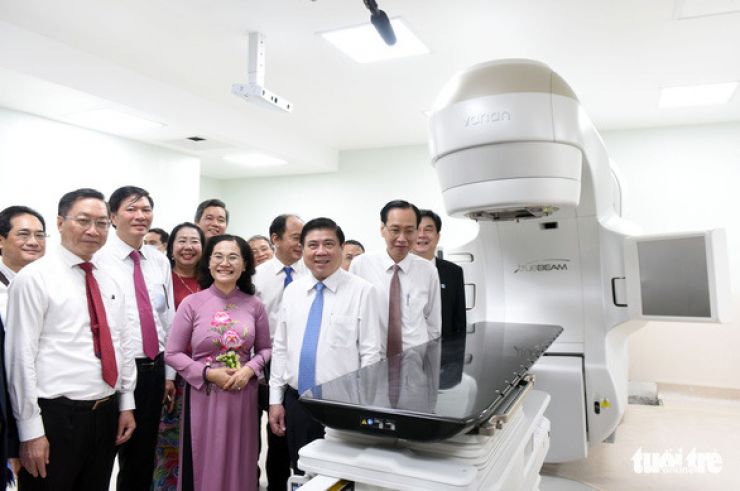 Lãnh đạo Thành phố đến thăm Khu xạ trị trong ngày khánh thành Khu Khám bệnh của BV Ung bướu cơ sở 2
