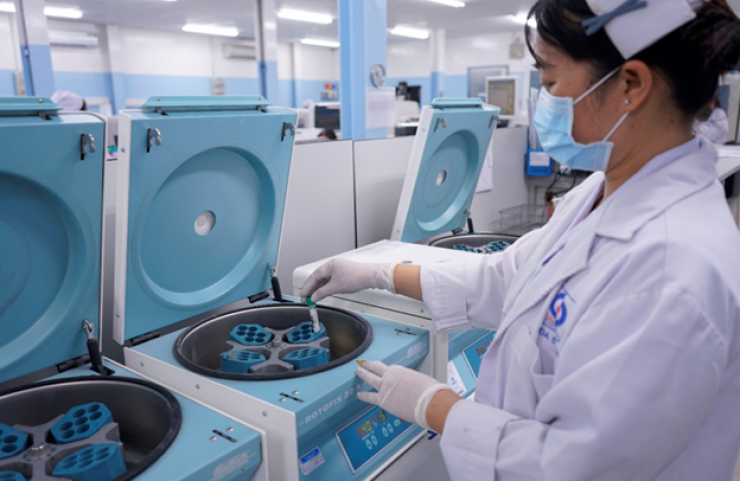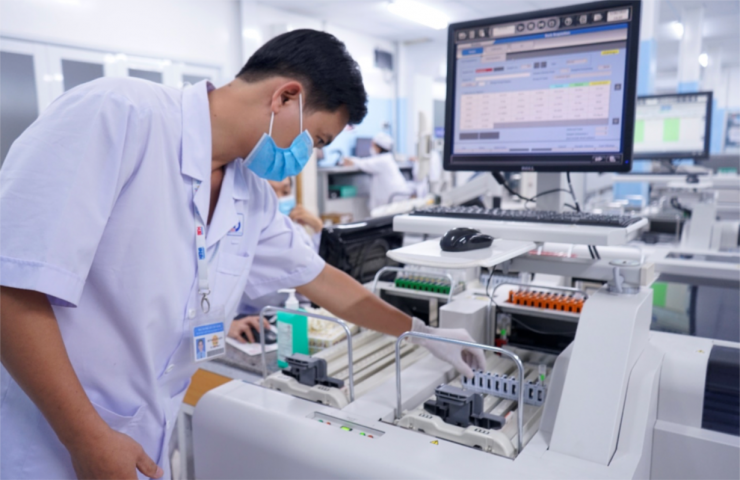 Kỹ thuật viên xét nghiệm thực hiện kỹ thuật xét nghiệm