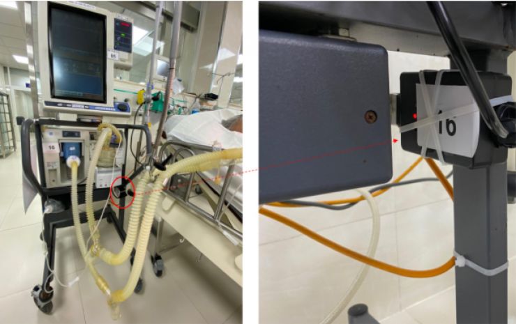 Tận dụng hạ tầng CNTT sẵn có của bệnh viện, các chuyên gia CNTT đã thiết lập nên hạ tầng cho IoT của bệnh viện, từ đó các máy thở sẽ được định danh và truyền thông tin tình trạng hoạt động qua mạng wifi của bệnh viện. Các chuyên gia CNTT của bệnh viện đã sử dụng con chip có tên là “esp8266”, là dòng chip tích hợp wifi 2.4Ghz, để thực hiện ghi nhận công suất điện tiêu thụ của mỗi máy thở và kết nối dữ liệu này với hệ thống wifi của bệnh viện. Vị trí của mỗi máy thở được xác định thông qua vị trí “access point” đã được xác định. Dữ liệu về công suất điện tiêu thụ sẽ được ghi nhận vào “server database”, nhờ đó biết được chính xác tình trạng hoạt động của máy thở.