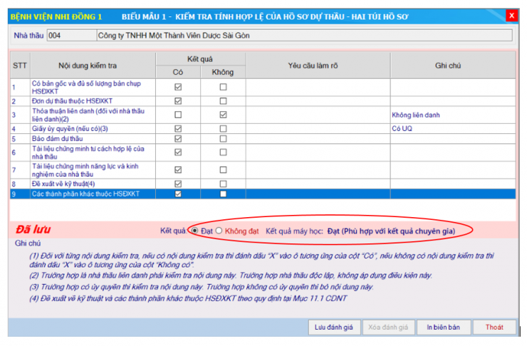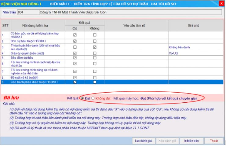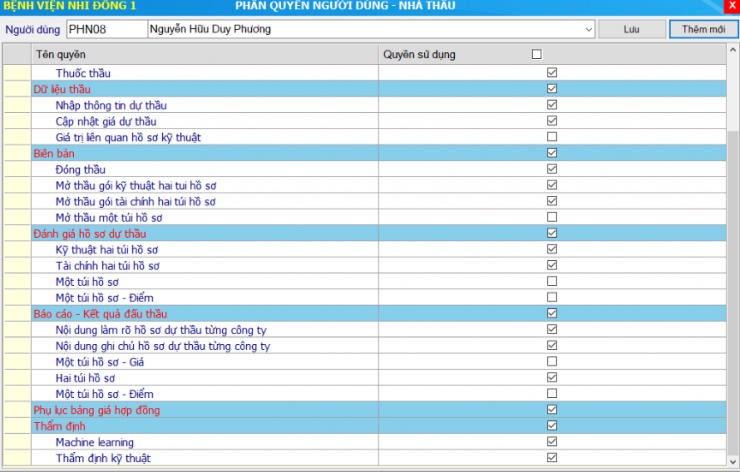 Điều đáng được ghi nhận thứ tư cũng là một yêu cầu không thể thiếu khi xây dựng phần mềm đó là tính bảo mật cao của phần mềm. Tất cả các giai đoạn chấm thầu và biểu mẫu đều được phân quyền tùy theo chức năng nhiệm vụ của từng thành viên, mỗi người chỉ được thực hiện phần việc của mình.