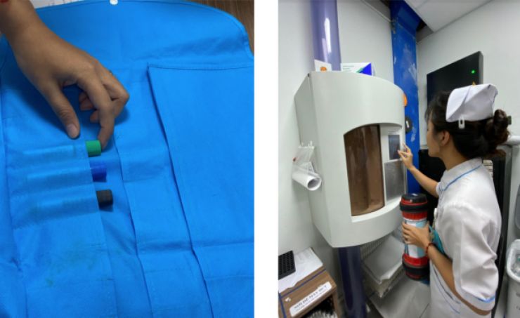 Băng chuyền vận chuyển mẫu bệnh phẩm đến máy xét nghiệm để thực hiện