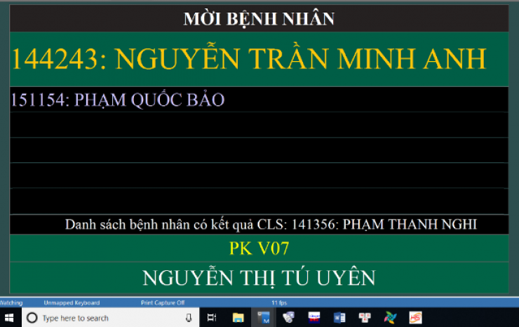 Thông báo đã có kết quả xét nghiệm trên màn hình thứ tự bệnh nhân chờ khám