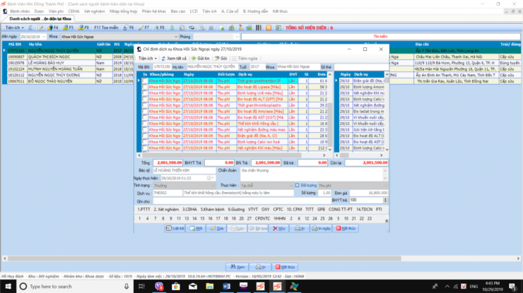 Màn hình báo đã có kết quả xét nghiệm trên HIS tại các khoa nội trú (chỉ định chuyển sang màu đỏ)