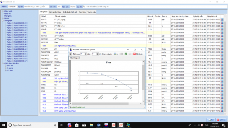Bác sĩ xem kết quả xét nghiệm trên HIS, có kèm biểu đồ theo thời gian
