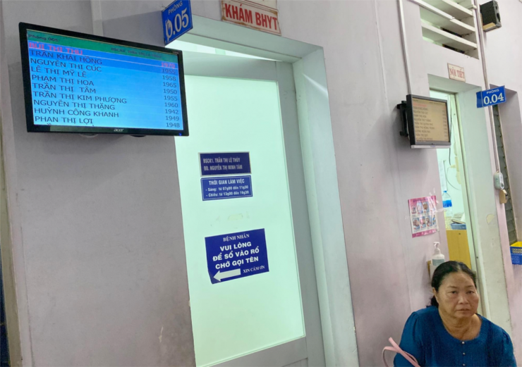 Người bệnh lớn tuổi đến khám tại BV Quận 1 không phải chăm chú nhìn vào màn hình, thay vào đó ngồi chờ nghe giọng đọc gọi tên nhẹ nhàng, dễ chịu